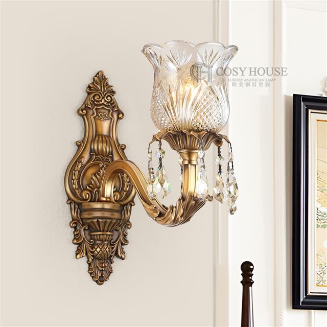 欧式新古典全铜壁灯6688客厅背景墙美式卧室床头壁灯