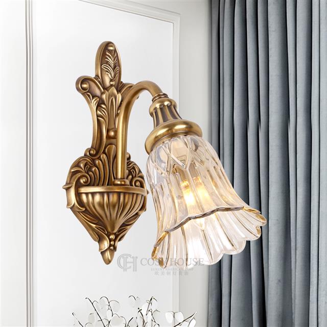 美式全铜壁灯6606客厅背景墙卧室床头单双头壁灯