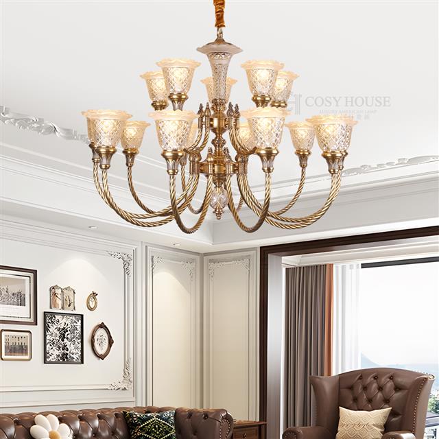 美式吊灯6616全铜客厅餐厅卧室灯新古典欧式复式吊灯