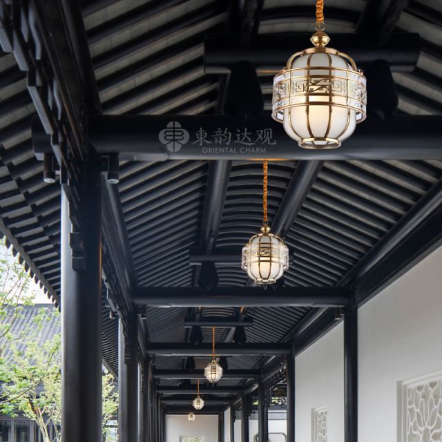新中式吊灯9002全铜茶室餐厅灯过道玄关小吊灯