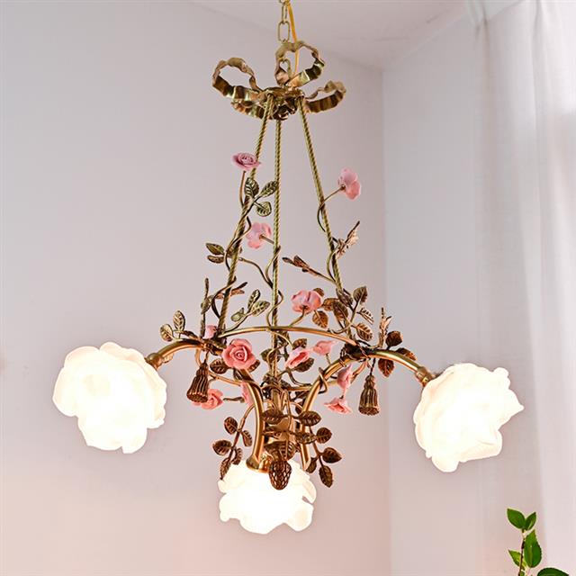 法式全铜吊灯YZ-1083浪漫田园餐厅中古客厅美式复古花朵卧室灯