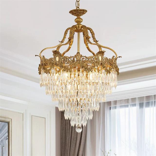 法式客厅餐厅全铜灯YD79欧式复古奢华卧室楼梯水晶吊灯