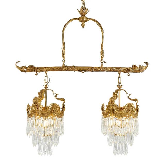 YD-17法式别墅餐厅吧台吊灯欧式奢华复古书房铜灯餐桌双头水晶全铜吊灯
