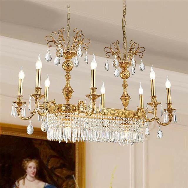 法式奢华长方形餐厅吊灯YD-38欧式别墅大气书房餐桌蜡烛头水晶全铜吊灯