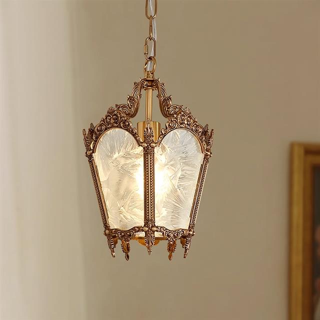 YD-90法式中古冰花全铜吊灯田园复古吧台过道阳台灯具床头小吊灯