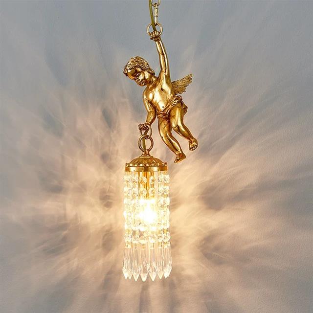法式天使过道玄关灯YD-29吧台水晶全铜吊灯欧式走廊阳台床头轻奢小吊灯