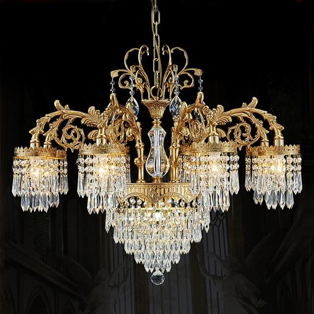 欧式奢华大气客厅餐厅水晶吊灯YD-39法式复古别墅卧室灯全铜灯
