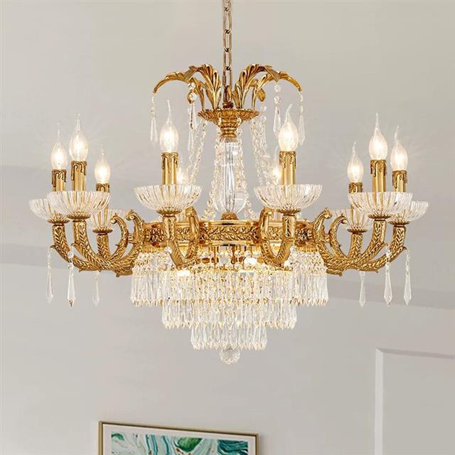 法式轻奢客厅餐厅全铜水晶吊灯YD-86欧式奢华别墅卧室房间灯