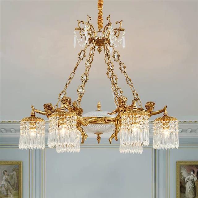 法式复古天使卧室水晶吊灯YD-106欧式别墅中古 客厅餐厅全铜吊灯