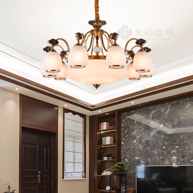 新中式全铜吊灯YD9608别墅复式高层客厅餐厅卧室灯
