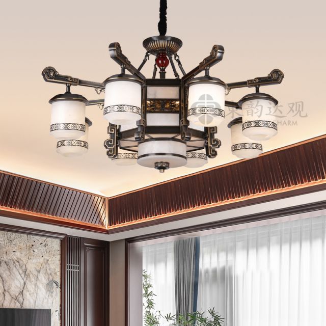 新中式玉石吊灯YP9075别墅复式高层客厅全铜灯餐厅灯