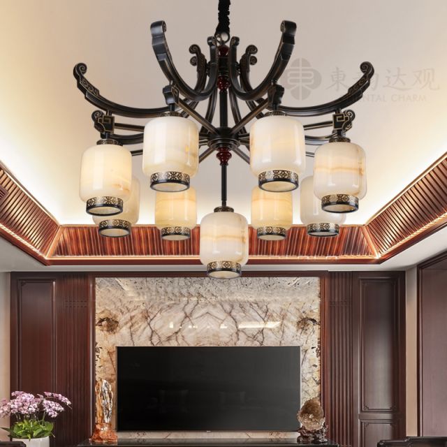 新中式全铜玉石吊灯YD9067别墅复式高层大气客厅餐厅灯