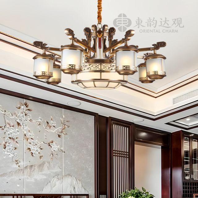 新中式全铜吊灯YP9002别墅复式高层大气吊灯客厅餐厅新古典创意灯