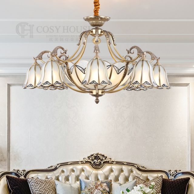 美式全铜吊灯8801欧式新古典别墅复式客厅餐厅吊灯