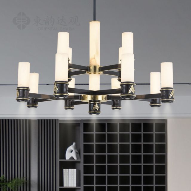 新中式全铜吊灯9805客厅餐厅玉石灯