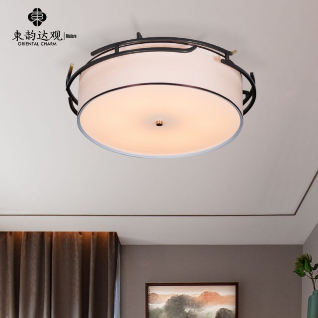 现代中式吸顶灯9308全铜黑擦金圆形卧室吸顶灯