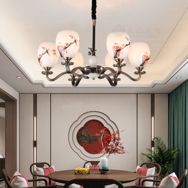 新中式吊灯9073全铜黑擦金客厅新古典餐厅灯